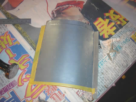 型紙から防錆鋼板を切り出し、形を作っていきます。