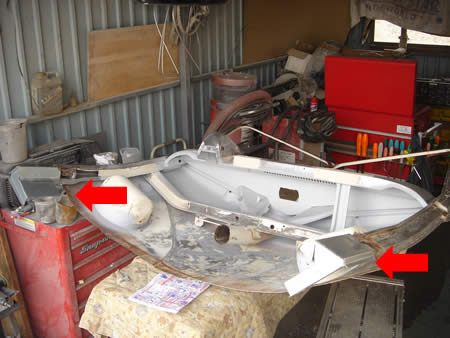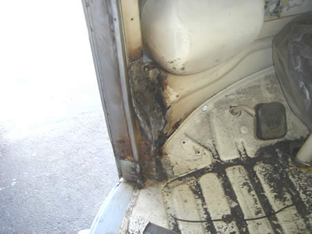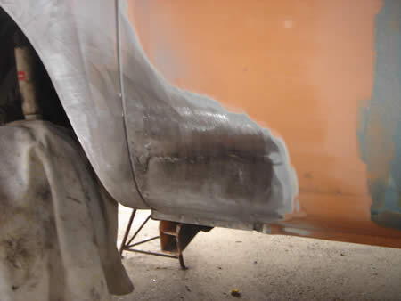 フロントタイヤで跳ね上げた水&泥で傷みやすい場所で、インナーパネル&アウターパネル共に張り変えることになりました。