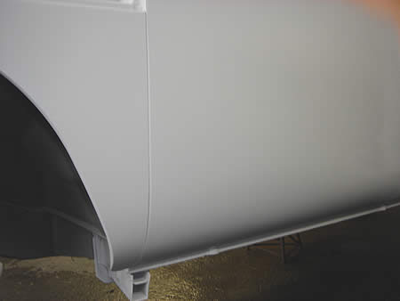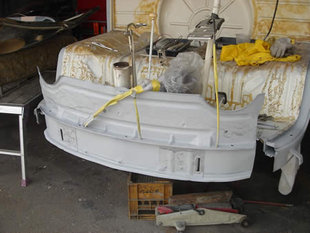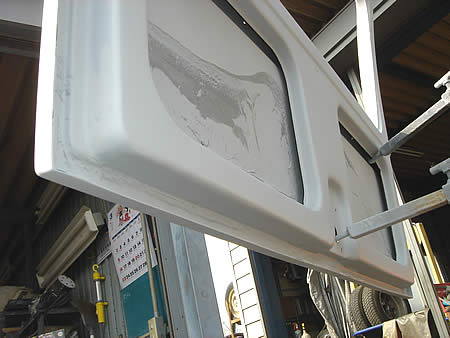 下側の全てを張り替えたリアハッチも面修正が終わり、昨日サフェーサーが入りました!