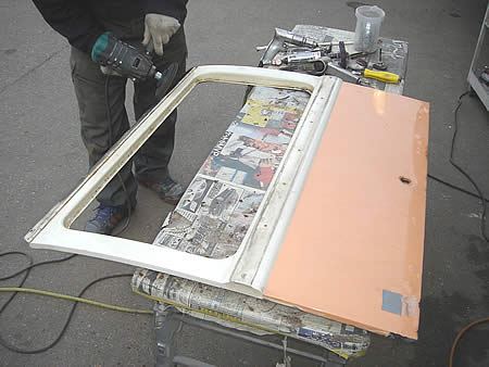 左ドア同様、右のドアにも下側に大きなサビが有ったため、パネルを製作いたしました。