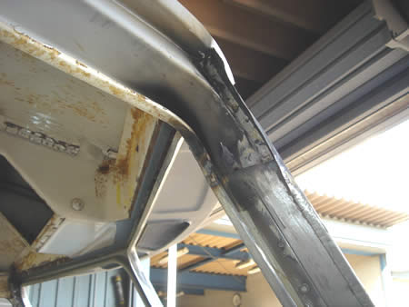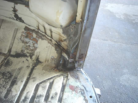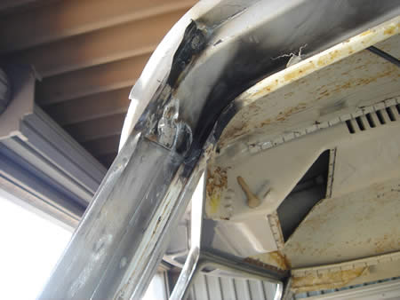 フロアーとの接続面、左右のピラーもご覧のようになりました。まだ溶接したばかりの写真ですから、見た目はあまり良くありませんが、これからキレイに整えていきます。