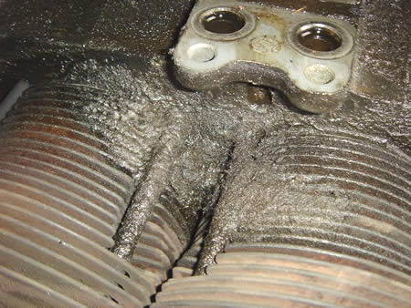 オイル漏れしていたオイルクーラーの下側には、ホコリが堆積して冷却はしていなかったでしょう・・・。