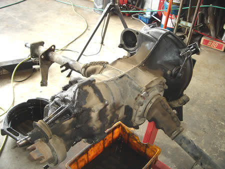エンジン&ミッションの分解も終わり、昨日「市場の魚屋さん」のようなかっこうをして半日洗浄していました。
