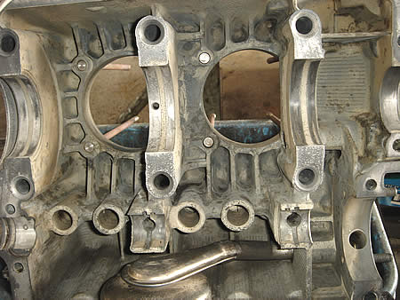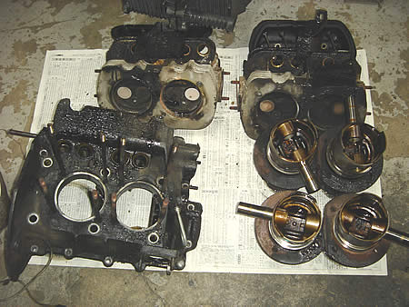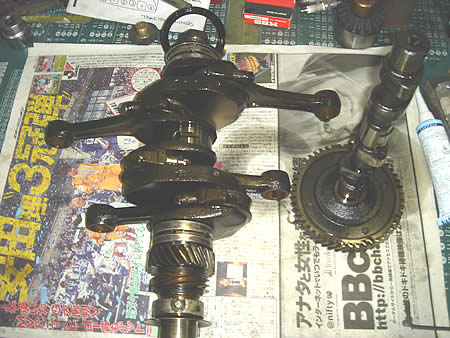 ヘッド&シリンダーを外し、ケースを分解してクランク&カムシャフトも外しました。