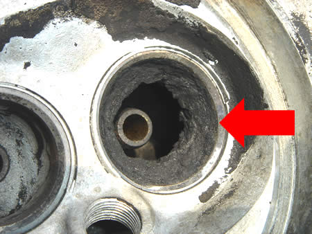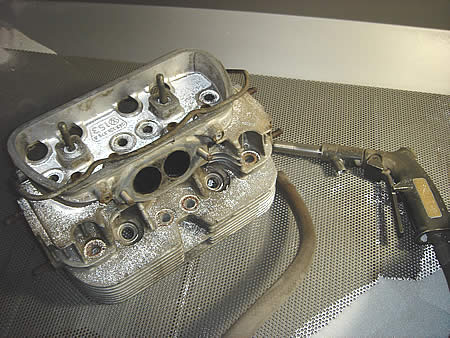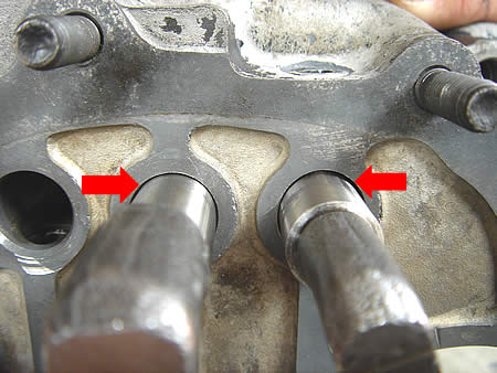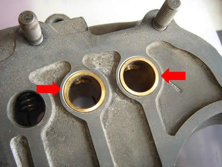 この原因はバルブガイドの摩耗、バルブシートとバルブの密着不良です。今回の作業は、バルブガイド交換、バルブシートカット、バルブフェース研磨or交換が必要です。