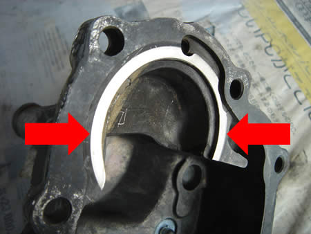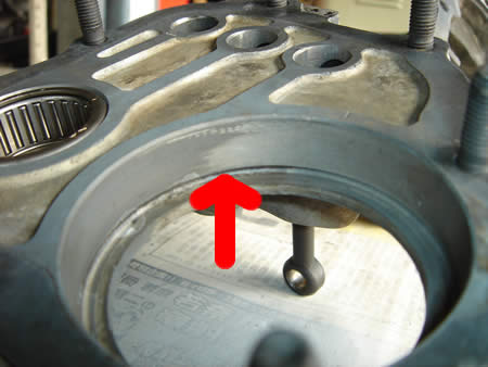 この部分はメインシャフトのベアリングを押さえ込んでいるところで、ミディエイト内のベアリングが動いてしまった事により押されて段付き摩耗をしているのです。