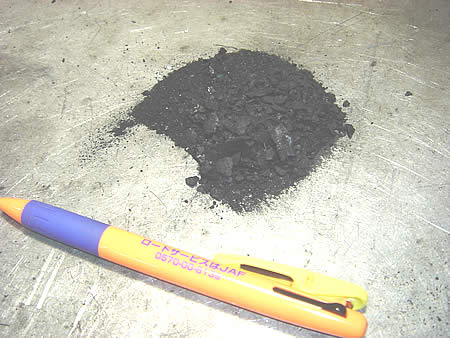 サンドブラスターで処理する前に、余分なカーボンを落としたのですが、まぁ〜凄かった・・・。