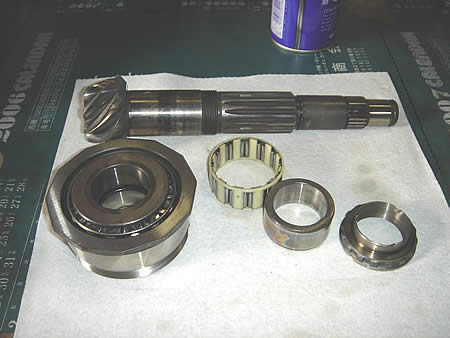 ピニオンのWテーパーベアリングには大きな傷みはなく再使用OKでした!