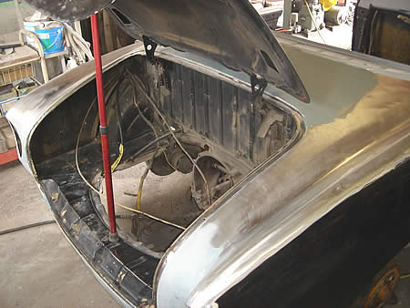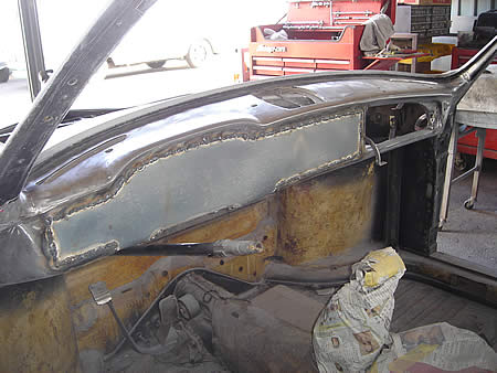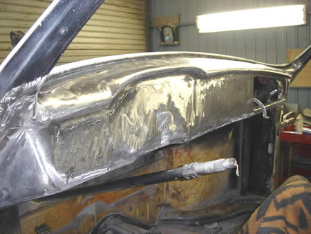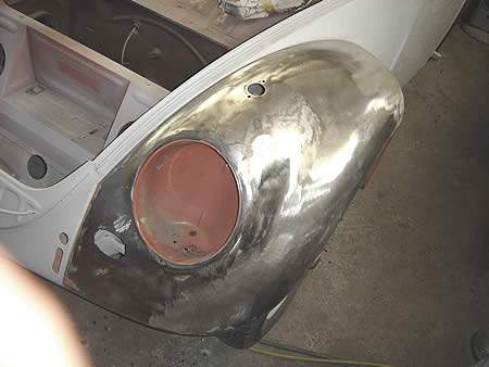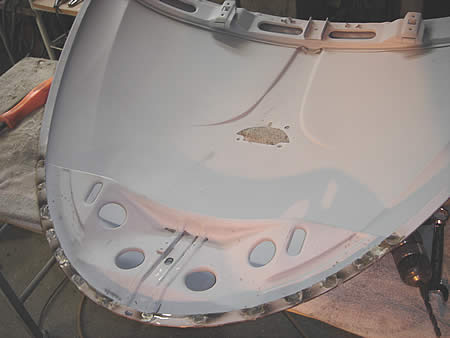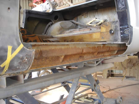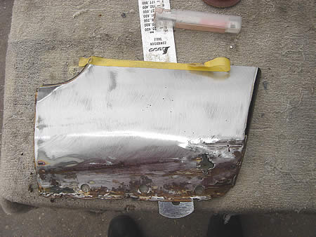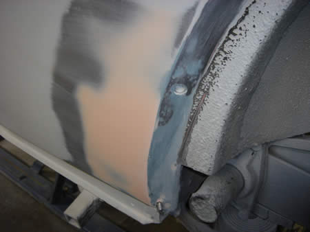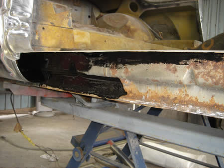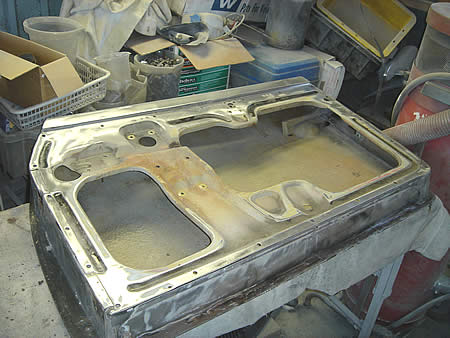 切開してみると、意外と中の状態は良好! POR−15にて防錆処理をしてからアウターパネルを交換します。