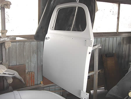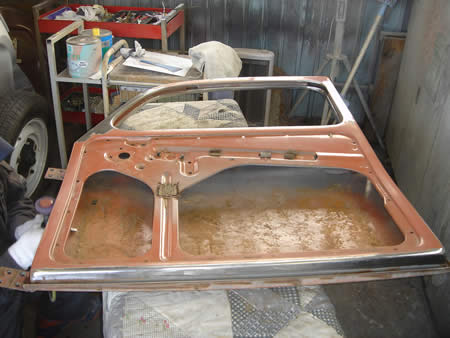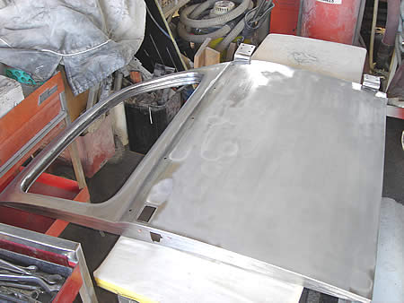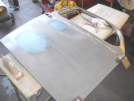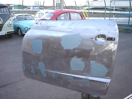 左ドアは順調に剥離作業が進み、面修正をしています。