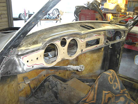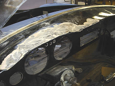 ピンクパテが入ったインパネ廻り、面修正も終盤です!