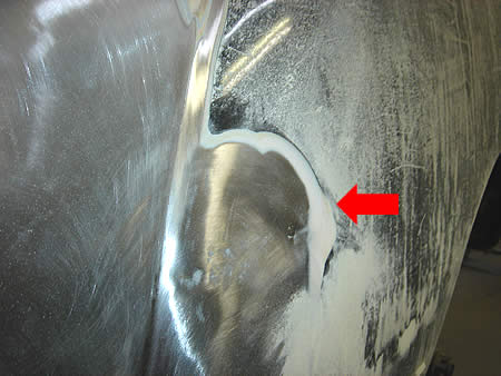 大きな凹みは無かったのですが・・・ナッ、ナンと鉄板の上には9層のペイント&サフェーサーが入っていました・・・。