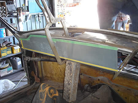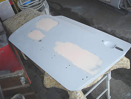 オリジナルのパネルに鉄板を貼り付け、パテで整形してありました・・・よく作ったなと関心して場合じゃないか・・・。