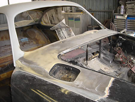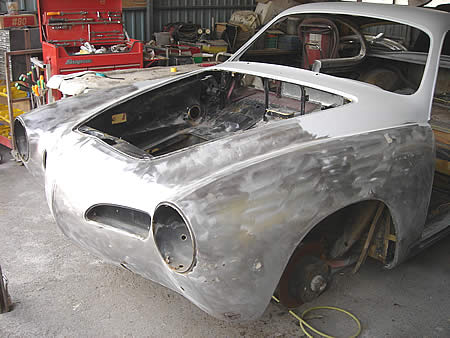 全て剥がすと・・・そんなに悪いわけじゃない!いつもの事ですが、カルマンギアは「パテのテンコ盛り」が多いのですよ・・・。
